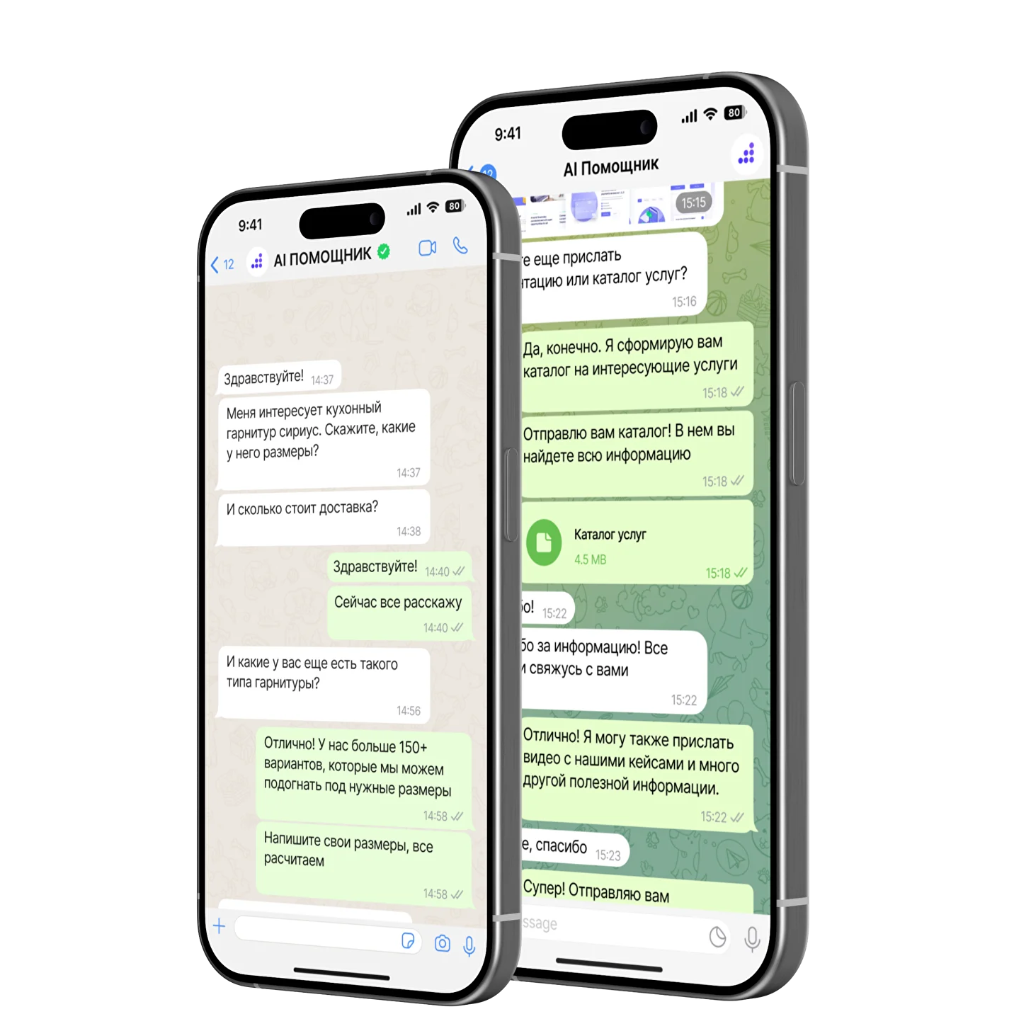 ИИ-ассистенты и консультанты берут на себя всю рутинную работу: отвечают на вопросы клиентов, оформляют заказы и передают их в CRM. Работают по вашим сценариям и консультируют по ассортименту. Обеспечивают круглосуточную поддержку без сбоев и простоев, повышая качество обслуживания и эффективность бизнеса.